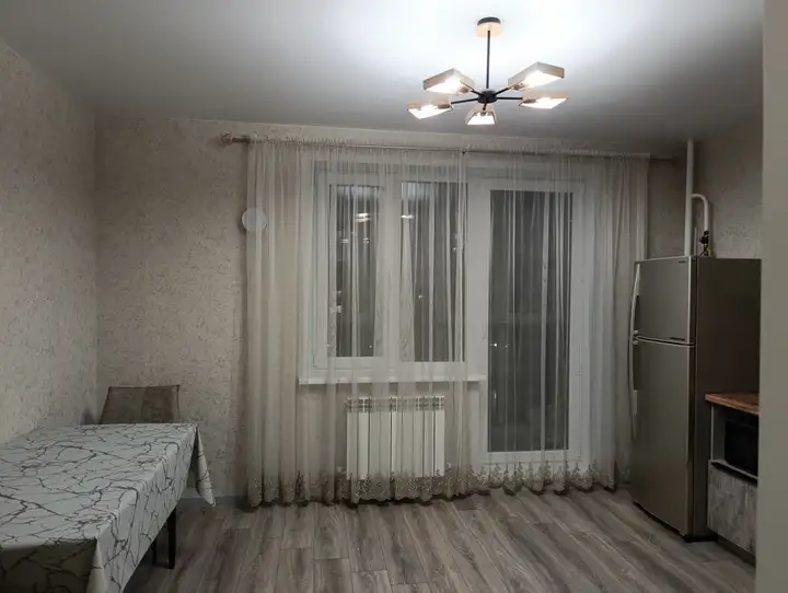 В квартире сделан качественный ремонт. На полу ламинат 33 класса, натяжные матовые потолки, установлены межкомнатные двери, окна ПВХ, санузел совмещенный в кафеле, установлена дорогая входная железная дверь.